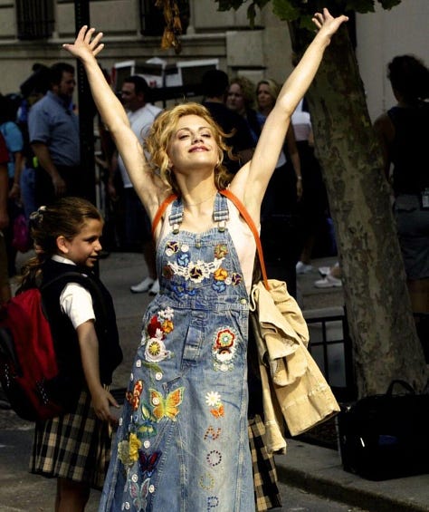 The brilliance of Uptown Girls’ costuming lies in how quietly it tells the truth about its heroine. Molly Gunn dresses to stay safe, to stay soft, to stay seen. Her clothes are both a performance and a coping mechanism. The prettiest possible version of survival. Brittany Murphy makes that contradiction feel real, even noble. Watching her spin through the world in silk skirts and cowboy boots feels like watching someone fight for her right to feel joy, even when she doesn’t quite know how to live yet.